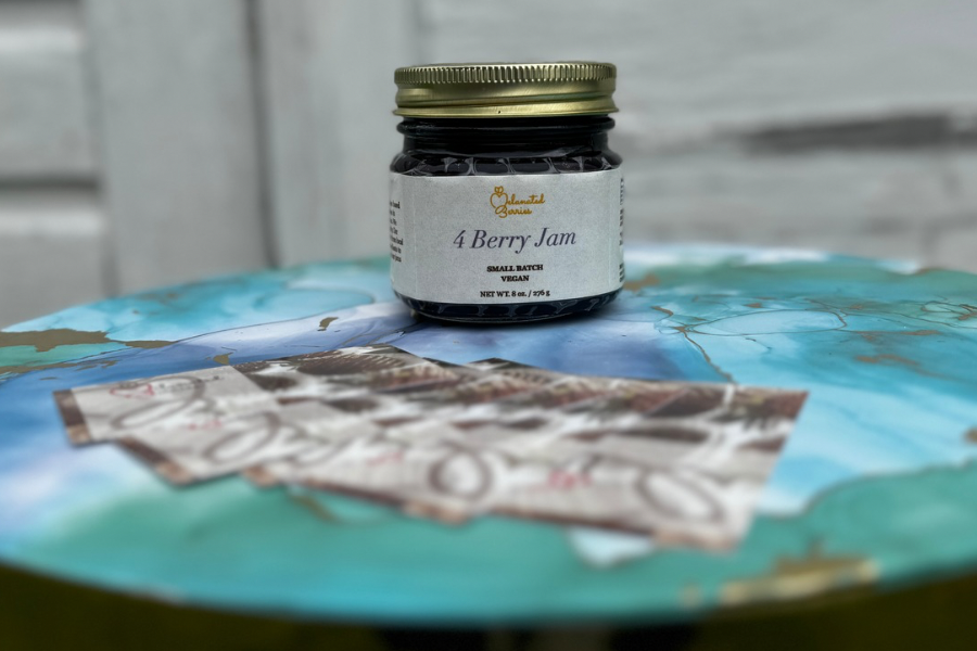 Our Local 4 Berry Jam is a vibrant symphony of flavors, crafted with a delightful mix of handpicked, locally sourced berries. Bursting with juicy strawberries, tart raspberries, sweet blueberries, and luscious blackberries, this jam is a true taste of our region’s harvest. We cook in small batches to preserve the natural sweetness and add just a hint of magic for a jam that’s rich in color, low in sugar, and oh-so-spreadable. Perfect for morning toast, desserts, or even straight off the spoon, our Local 4 Berry Jam is as local as it gets and as delicious as you can dream!